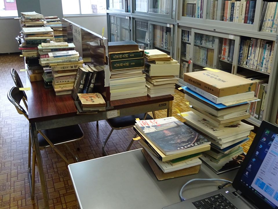 他にも、郷土資料の選別や図書の登録など、皆さんたくさんの本に埋もれて作業されていました…