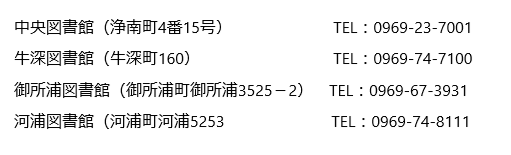 問い合わせ先:天草市立中央図書館(0969-23-7001)