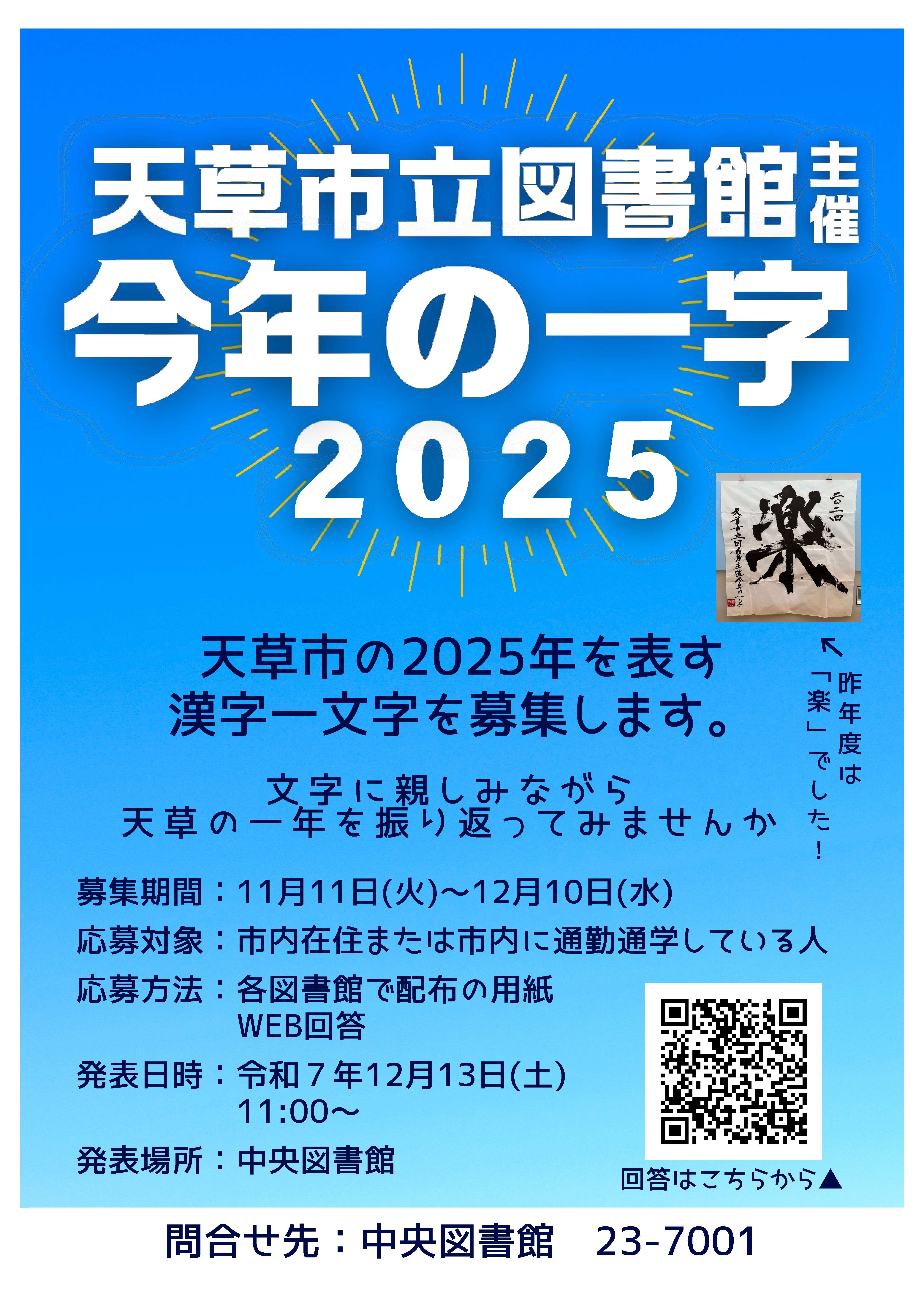 【天草市立図書館】「今年の一字2025」を募集します。