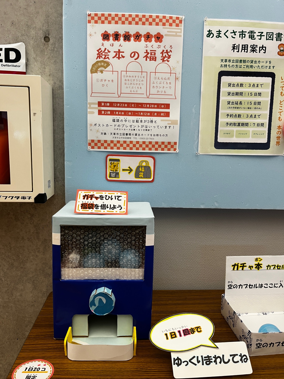 (1)カウンター横のガチャをまわし、カプセルの中の紙をみる